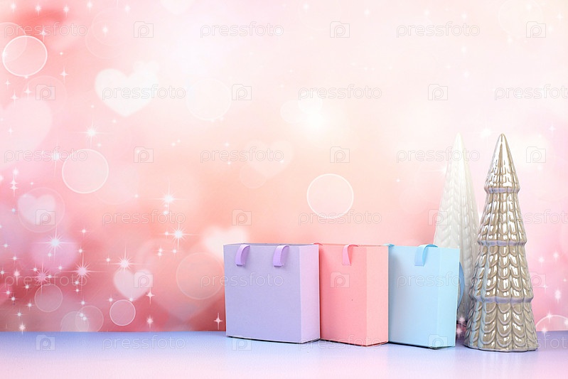 Рождественские подарочные коробки и пакеты на фоне боке, новогодние распродажи и концепция покупок, Черная пятница, рекламный баннер магазина и шаблон экрана, выборочный фокус
