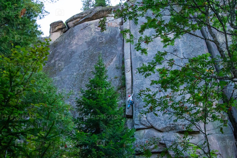 Скалолаз в национальном парке «Красноярские Столбы»