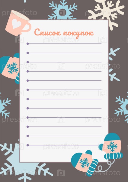 Шаблон списка покупок с рисунком зимней тематики