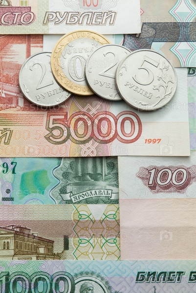 Число 2025 года, составленное из рублевых монет на фоне рублевой купюры