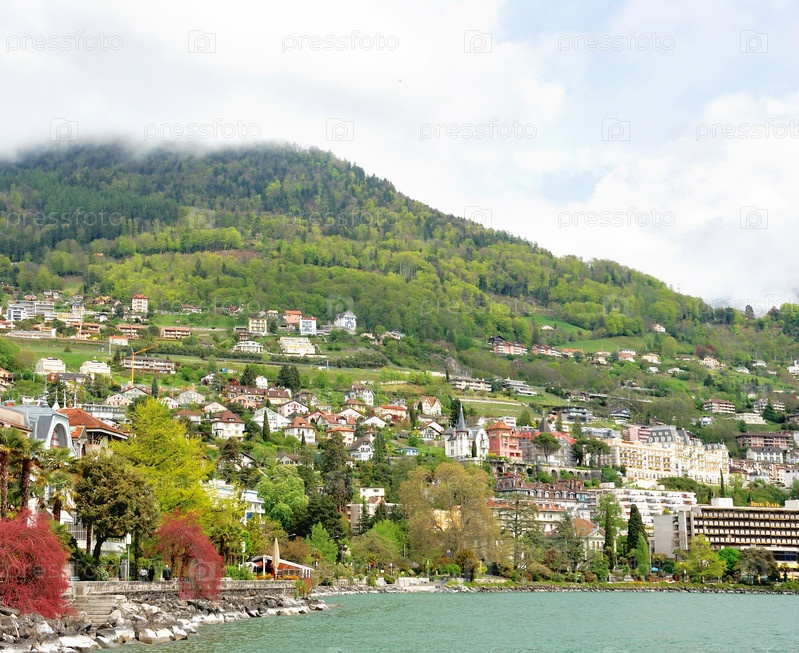 Вид на город Женевское озеро, Швейцария