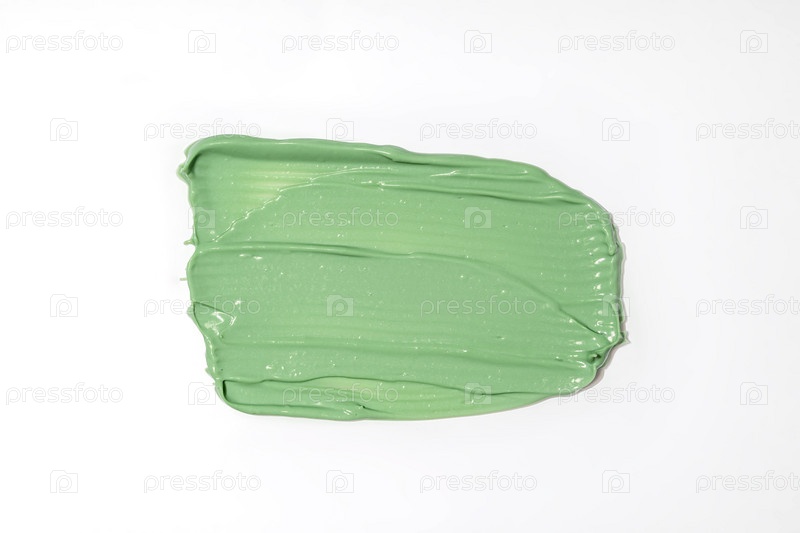 Зелёная грязная маска swatch на белом фоне. Крупный план косметического продукта смазка, консилер, каолин или зеленая чайная маска. Густая текстура изолирована на белом
