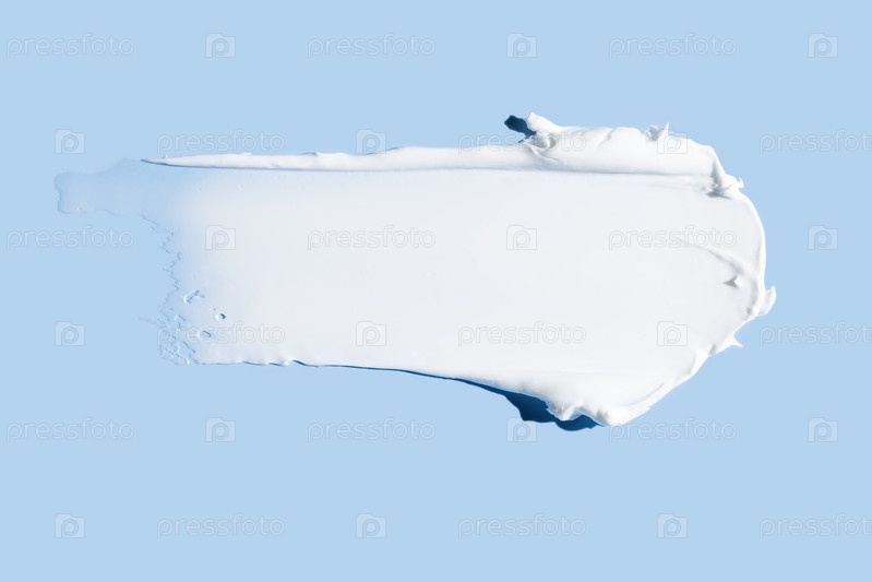 Мазок крема для лица, изолированный на синем фоне. Белый отшелушивающий крем-мазок, образец пятна. Образец продукта по уходу за кожей лица или тела. Демонстрация продукта