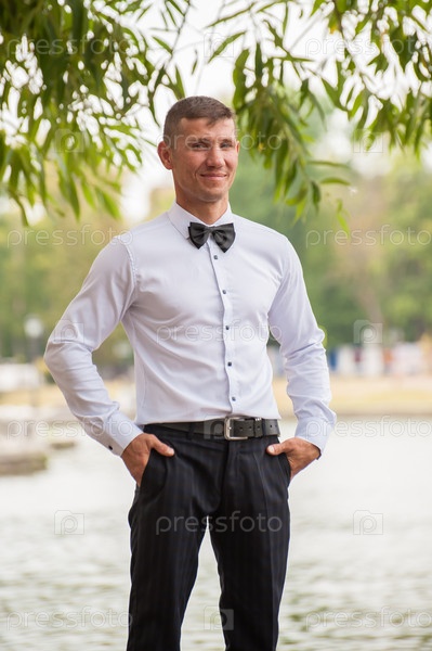 Мужчина, жених в классическом костюме и с бутоньеркой
