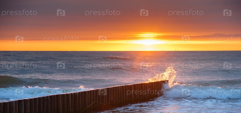 Закат и брызги морских волн