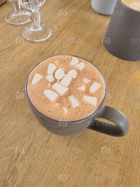 Чашка какао с маршмеллоу на столе