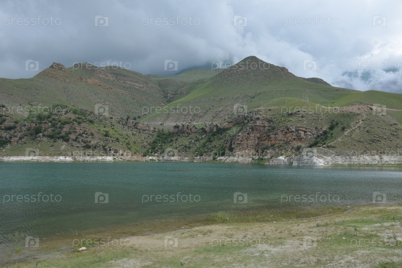 Прекрасное бирюзовое озеро Гижгит (Былымское) в окружении гор – рукотворный водоем, использовался как хранилище отходов Тырныаузского вольфрамо-молибденового комбината, Кабардино-Балкарская Республика, Эльбрусский район, сельское поселение Былым