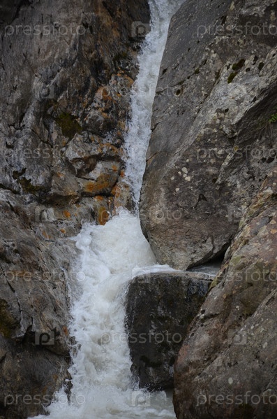 Водопад на бурной горной реке Адыр-су в Баксанской долине, Кабардино-Балкарская Республика, Эльбрусский район