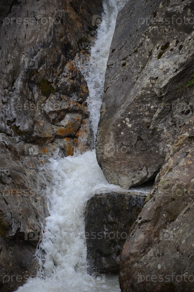 Водопад на бурной горной реке Адыр-су в Баксанской долине, Кабардино-Балкарская Республика, Эльбрусский район