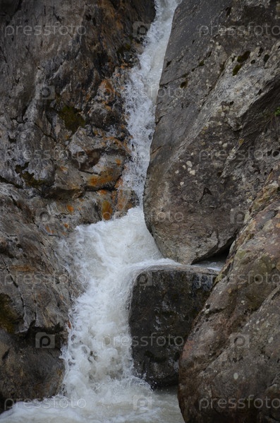 Водопад на бурной горной реке Адыр-су в Баксанской долине, Кабардино-Балкарская Республика, Эльбрусский район