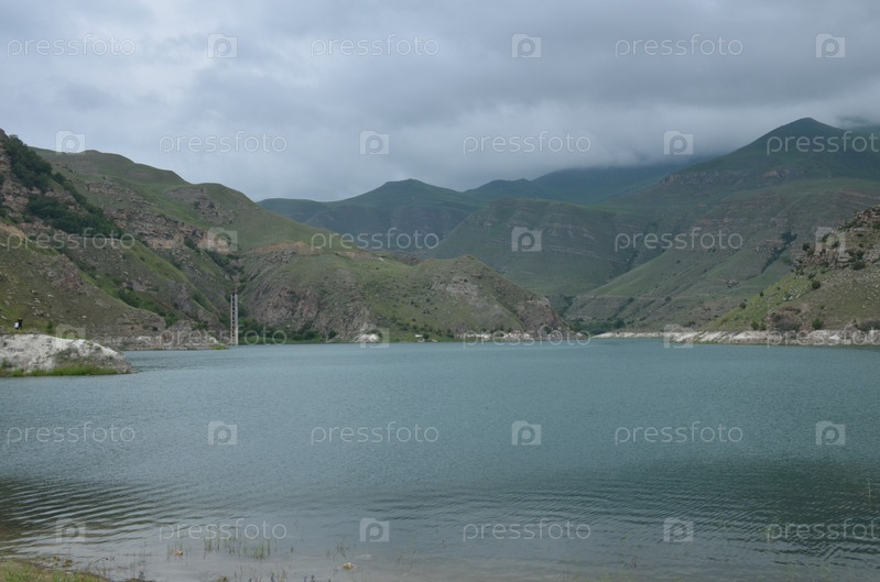 Прекрасное бирюзовое озеро Гижгит (Былымское) в окружении гор – рукотворный водоем, использовался как хранилище отходов Тырныаузского вольфрамо-молибденового комбината, Кабардино-Балкарская Республика, Эльбрусский район, сельское поселение Былым