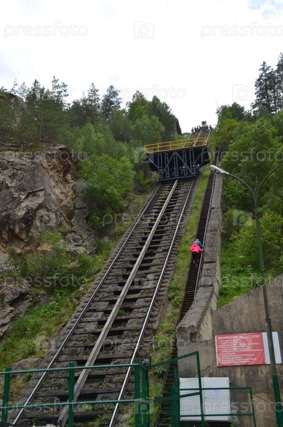 Подъемник для автомобилей – фуникулер (уникальный грузовой автомобильный лифт) в ущелье Адыр-Су,Кабардино-Балкарская Республика, Эльбрусский район, Баксанское ущелье