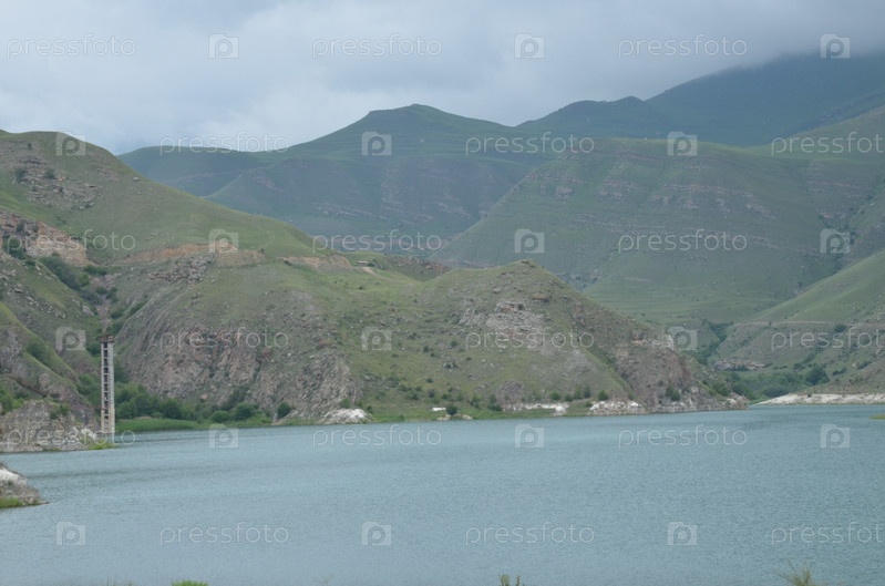 Прекрасное бирюзовое озеро Гижгит (Былымское) в окружении гор – рукотворный водоем, использовался как хранилище отходов Тырныаузского вольфрамо-молибденового комбината, Кабардино-Балкарская Республика, Эльбрусский район, сельское поселение Былым
