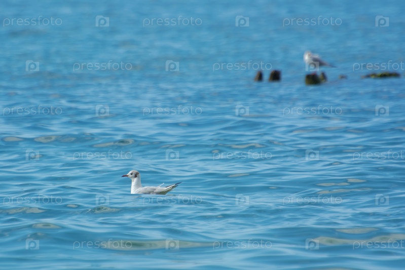 Чайки и птицы сидят над поверхностью воды