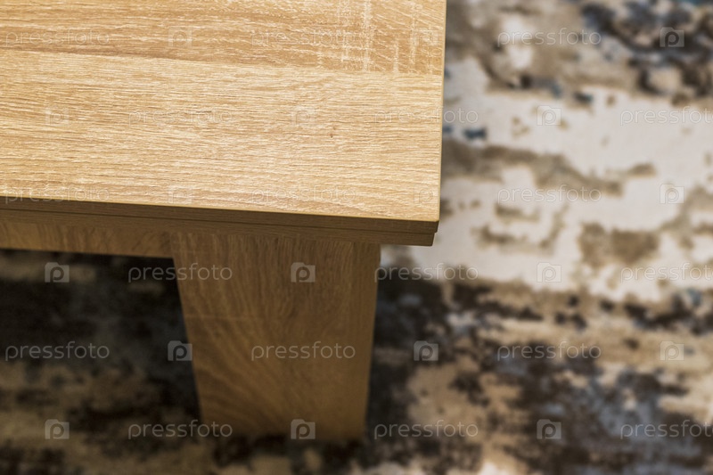 Концептуальный снимок части деревянного стола на ковре. Интерьер