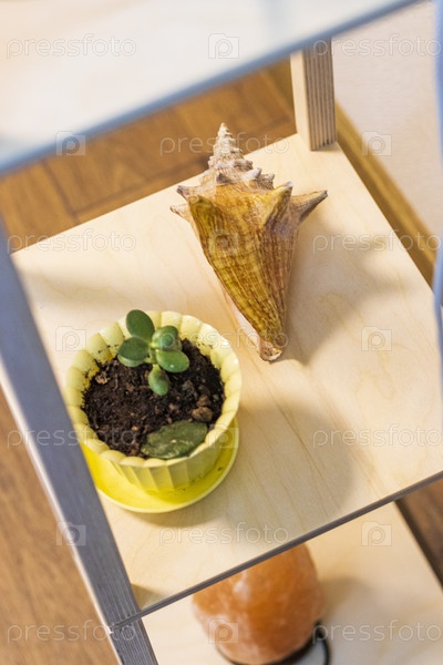 Снимок декоративной, стильной полки в квартире. Интерьер