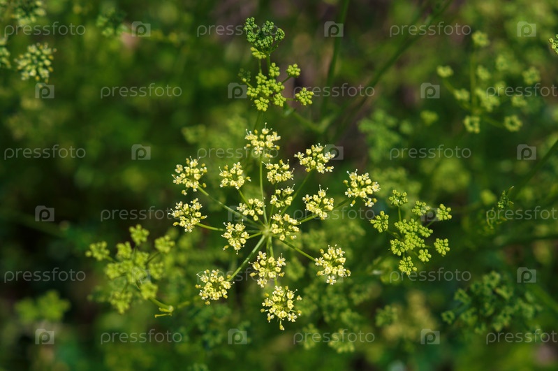 Петрушка на грядке цветет