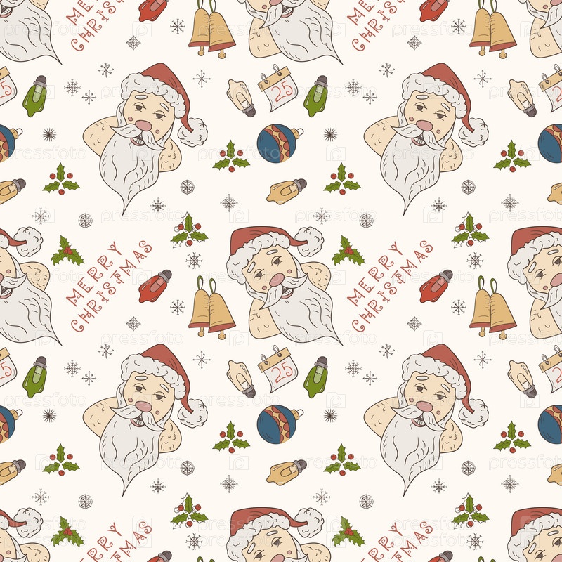 Рождественская цветовая бесшовная контурная иллюстрация в стиле детского doodle Лицо Санта-Клауса