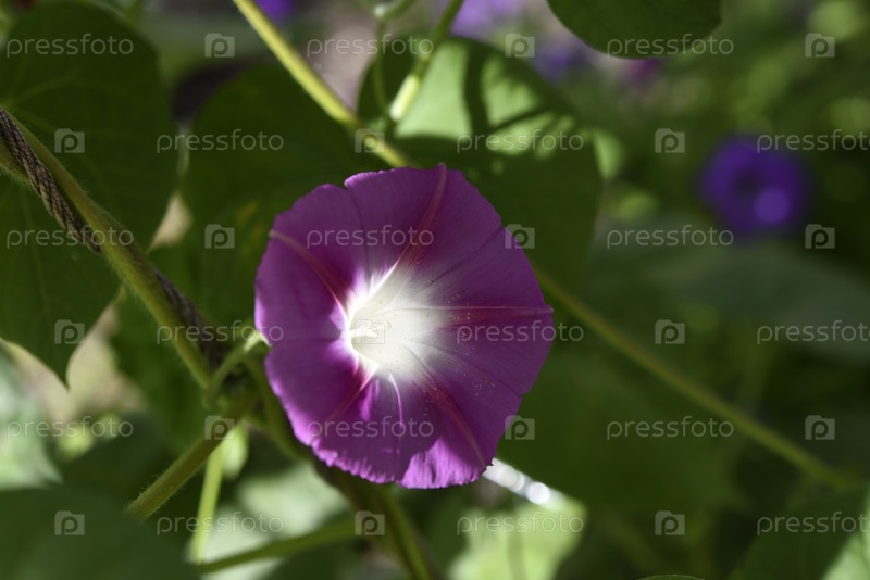 Розовый цветок в зелени. Бледно-розовый цветок ипомеи