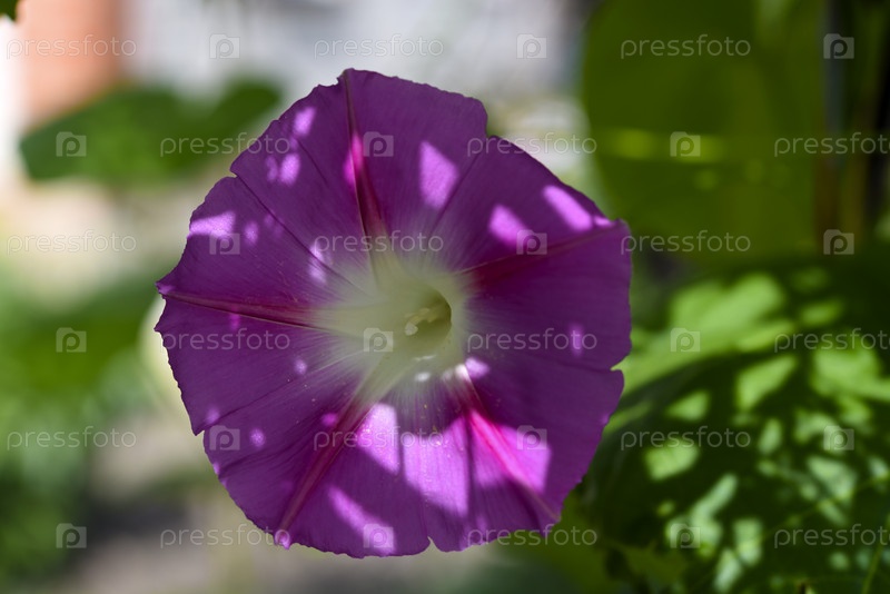 Розовый цветок в зелени. Бледно-розовый цветок ипомеи