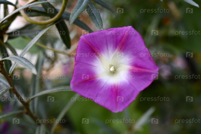 Розовый цветок в зелени. Бледно-розовый цветок ипомеи