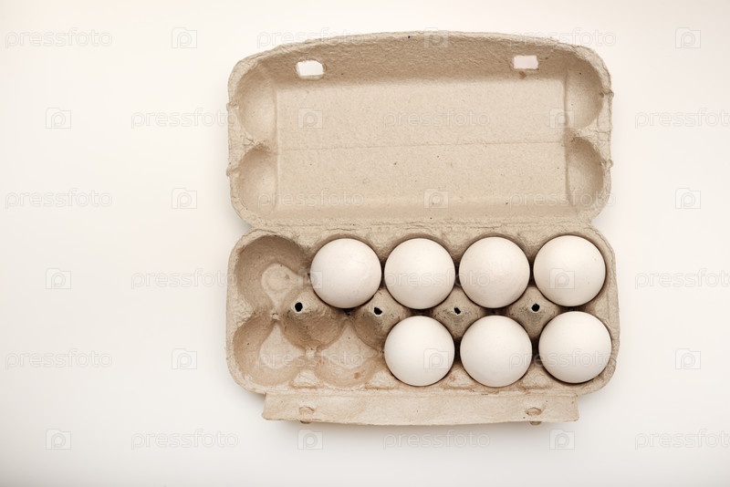 Белые яйца в упаковке. Куриные яйца на белом фоне
