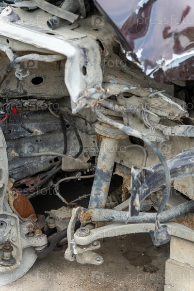 На парковке припаркован легковой автомобиль, у которого в результате аварии повреждена правая передняя часть