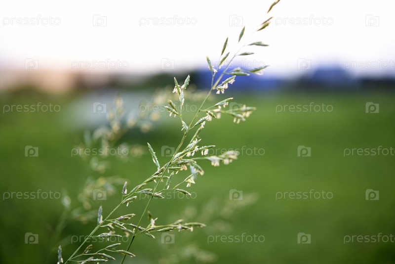 Золотое растение на фоне травы Bromus inermis Полевое растение