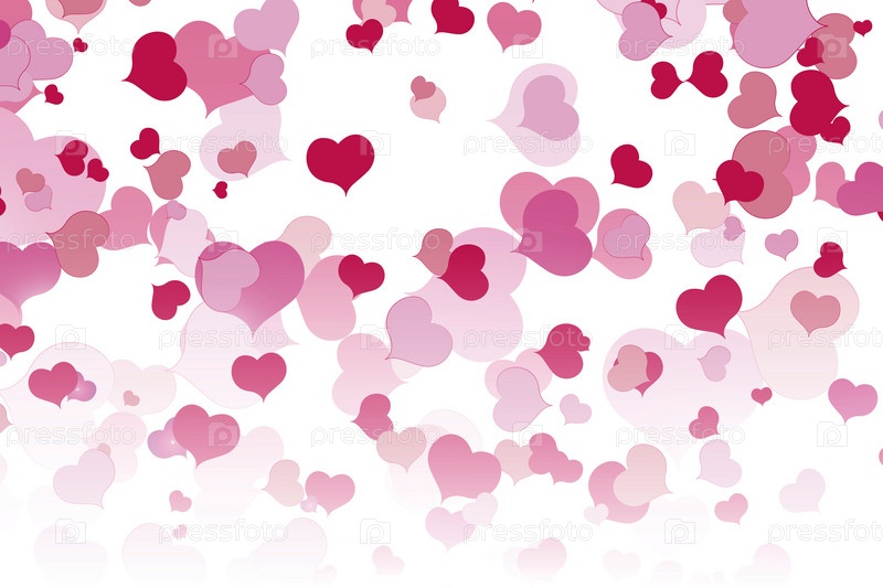 Много красных сердечек внутри пузырей на розовом фоне мыльный пузырь