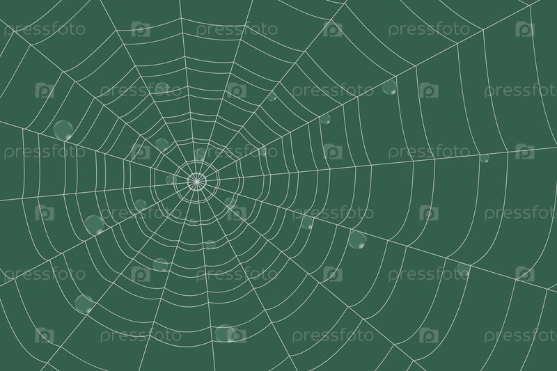 Роса на сетке концентрической паутины на зеленом фоне
