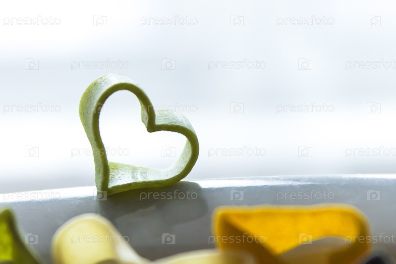Макароны в форме сердечек, разных цветов, перед приготовлением