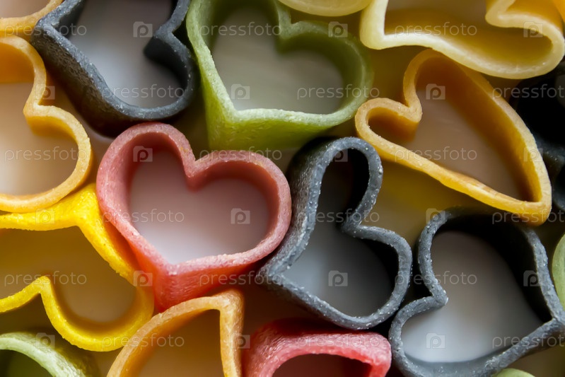 Макароны в форме сердечек, разных цветов, перед приготовлением