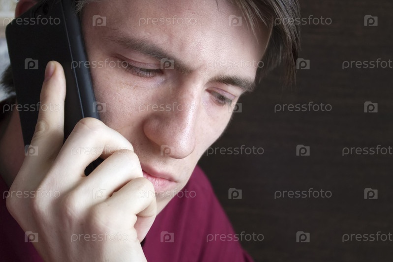 Молодой парень разговаривает по телефону, глядя вниз