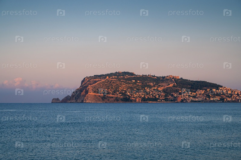 Прекрасный рассвет на пляже Алании с видом на знаменитый остров Алания в Турции