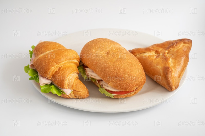 Ассорти из сэндвичей и выпечки на тарелке