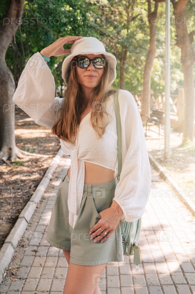 Стильная женщина в летнем наряде на солнечной прогулке