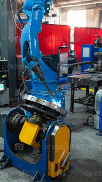 Автоматический промышленный сварочный робот на современном заводе