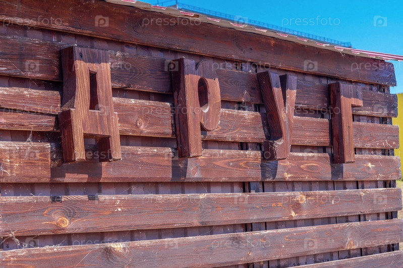 Большие буквы из дерева образуют слово Друг на доме