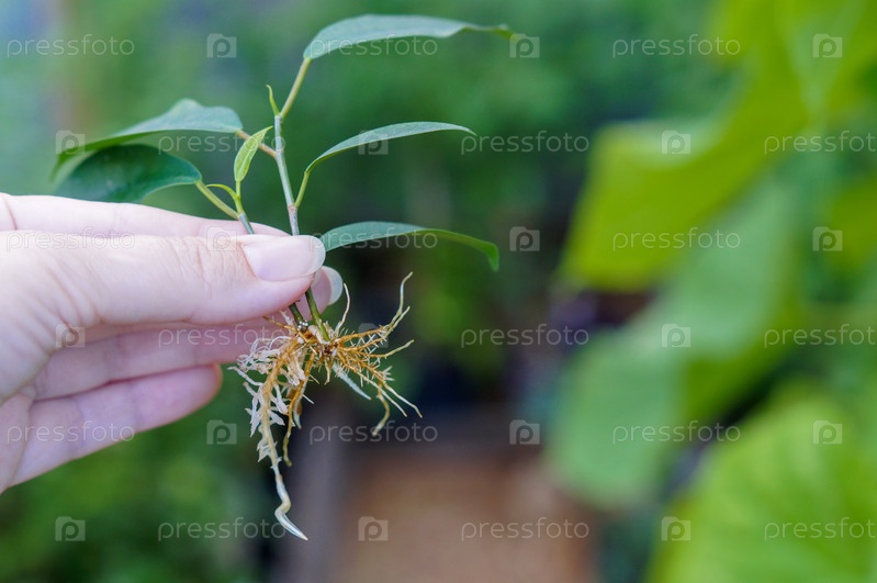 Два черенка фикуса Микрокарпа с отличной корневой системой в женской руке