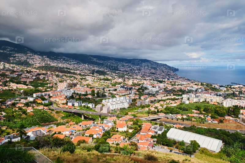 Вид с дрона на город Фуншал, Мадейра, Португалия