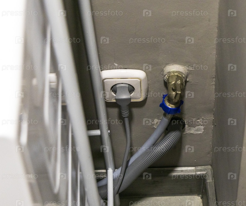 Электрические и водопроводные соединения стиральной машины. В помещении