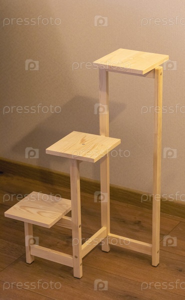 Крупный план собранной деревянной полки для растений в горшках. Хобби