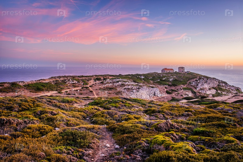 Кабо Эшпишел мыс Эшпишел на Атлантическом океане на закате с руинами