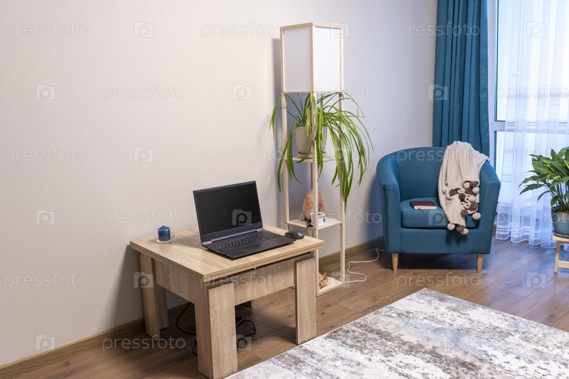 Крупный план уютного уголка в квартире с удобным креслом. Интерьер