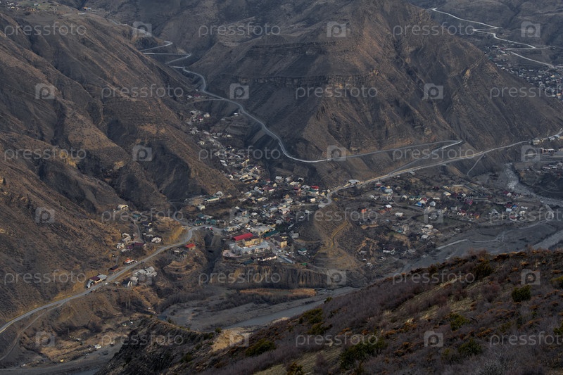 Агвали. Республика Дагестан. Россия. Апрель 05, 2021. Вид на город Агвали из высокогорного спортивного лагеря Северо-Восточного Кавказских гор