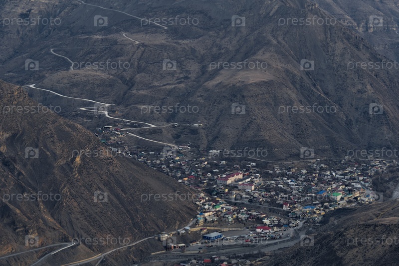 Агвали. Республика Дагестан. Россия. Апрель 05, 2021. Вид на город Агвали из высокогорного спортивного лагеря Северо-Восточного Кавказских гор