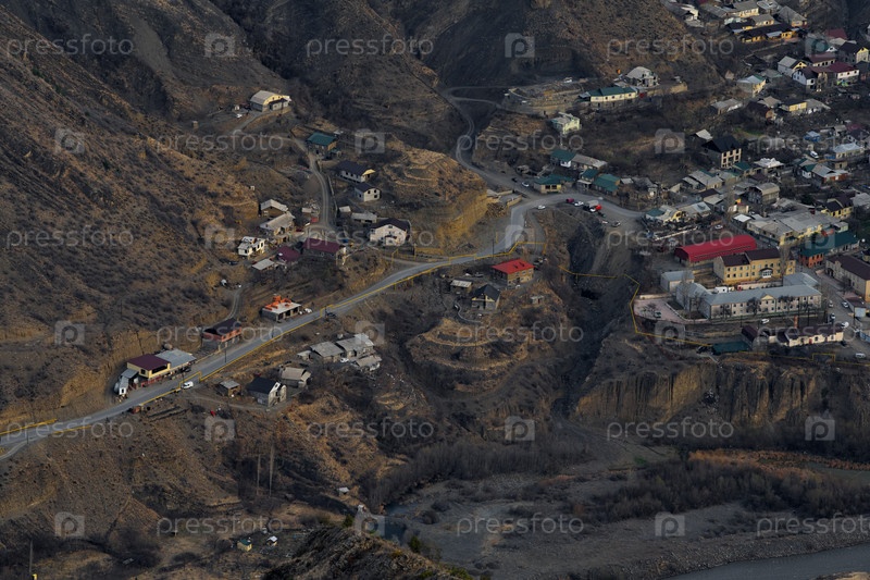 Агвали. Республика Дагестан. Россия. Апрель 05, 2021. Вид на город Агвали из высокогорного спортивного лагеря Северо-Восточного Кавказских гор