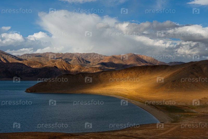 Таджикистан. Живописный закат в долине горного пустынного озера Булункуль на северо-восточном участке Памирского тракта