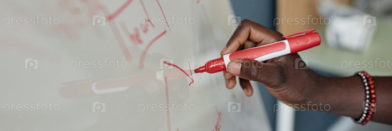 Письмо на доске с использованием красного маркера в классе