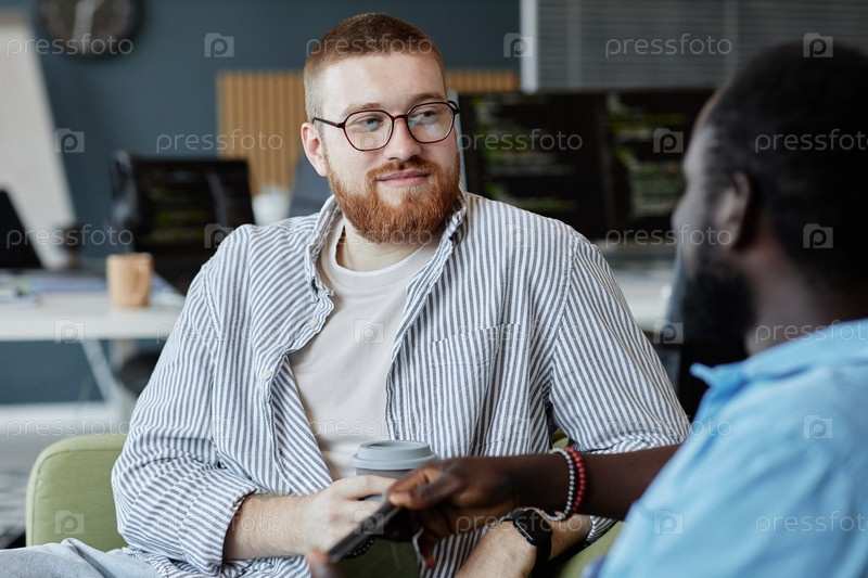 Обсуждение рабочих проектов в современном офисе